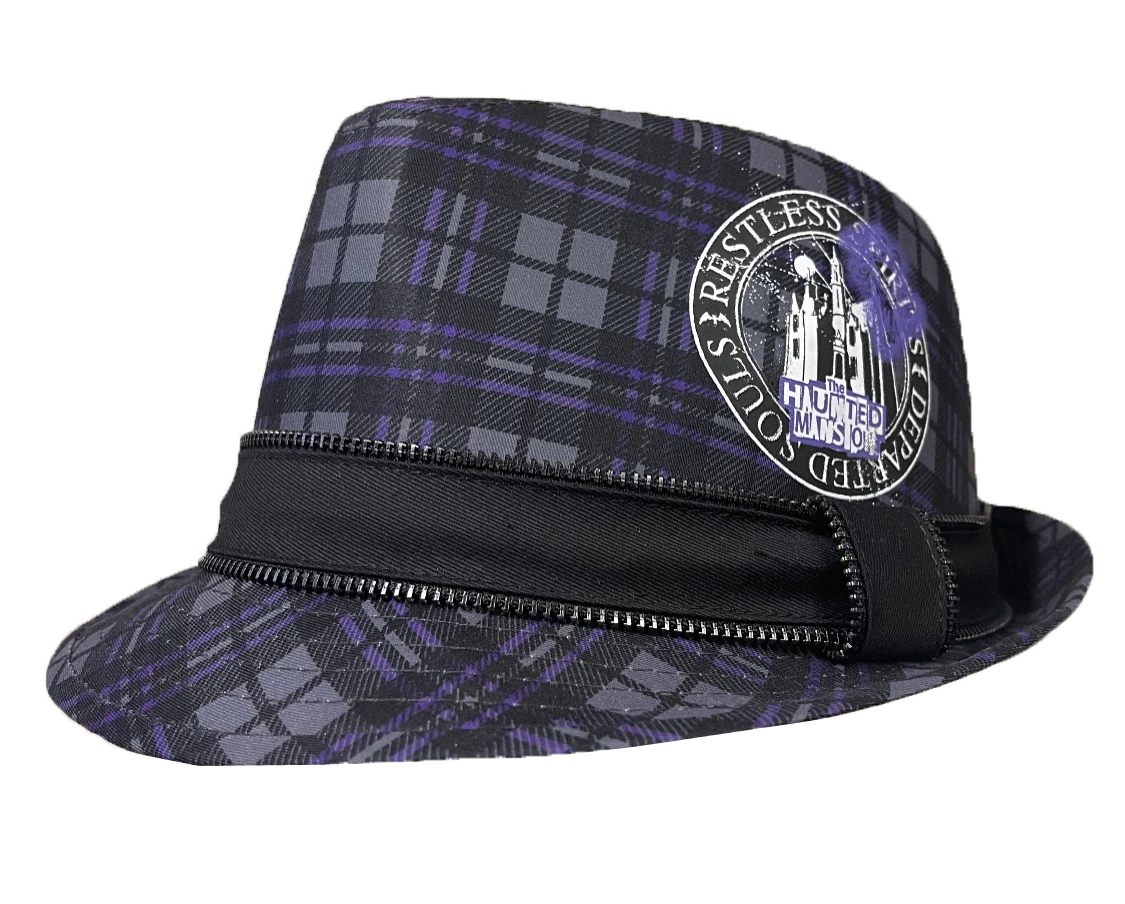 Make you day more fashionable with this Black Haunted Mansion fedora, with the signature Haunted Mansion plaid design, a terrific topper for the trick or treat season – or any time of year!